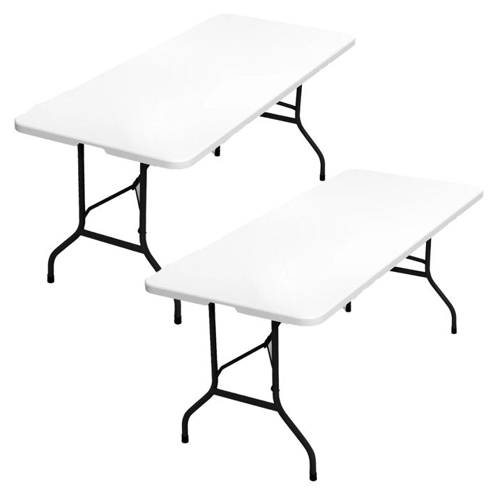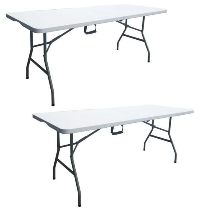 Table de réception traiteur pliante - 8 personnes - 180x74xH735cm - Structure acier et plateau polyéthylène PEHD - Blanc - Lot de 2