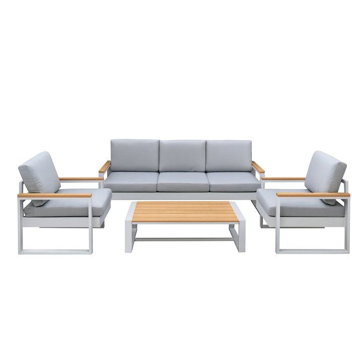 Salon de jardin - Aluminium - 5 personnes - BAHILA - Canapé triple + 2 fauteuils + table basse