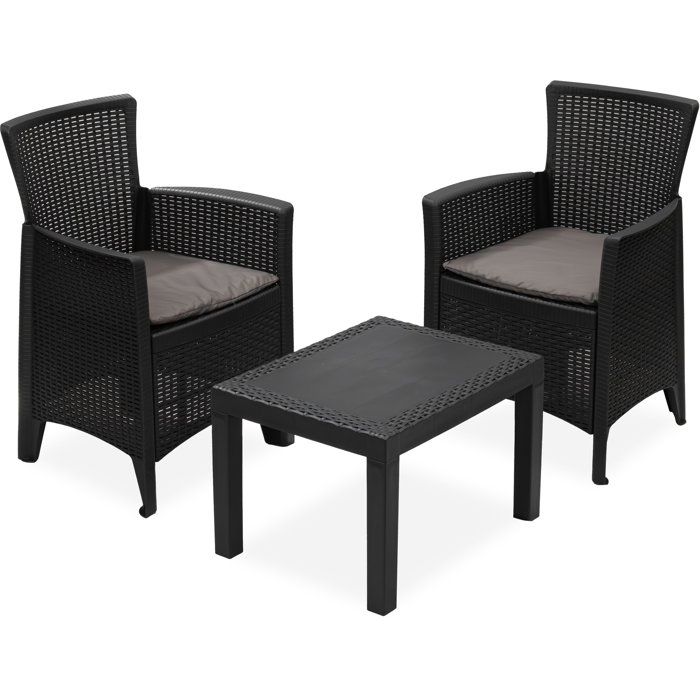 Salon de jardin - Polypropylène - IPAE - 2 personnes - Forest - 2 fauteuils avec coussin dassise + 1 table basse - Anthracite
