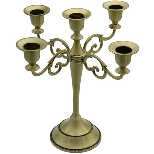 Chandelier Bougeoir en Métal 5 Branches 26cm Haut, Bougeoirs Vintage pour Dîner aux Chandelles Fête Centre de Table Noel Halloween Mariage (Bronze)