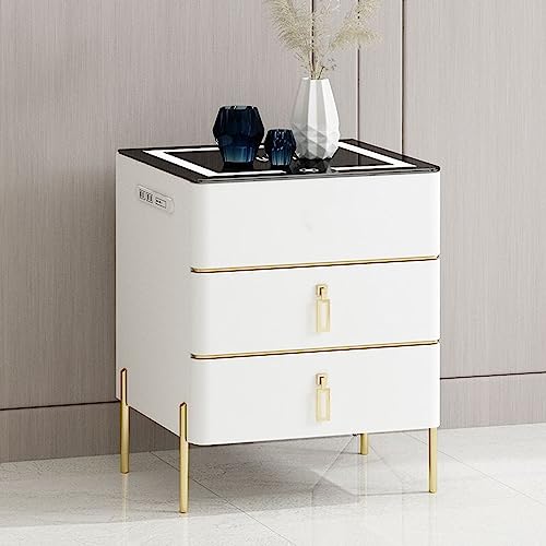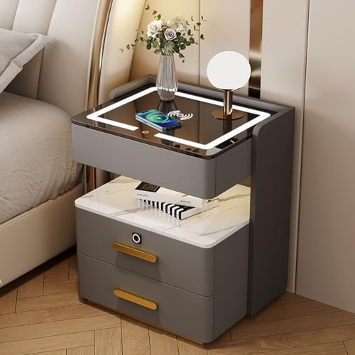 Table de Chevet Intelligente à Lumière LED Moderne, Table de Chevet avec Port de Charge Sans Fil, Table de Nuit Intelligente avec Serrure à Empreinte Digitale, Table D'appoint en Acrylique ( Color : G