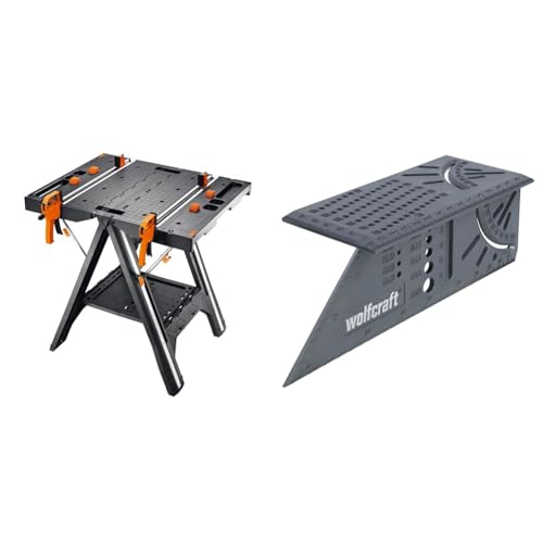 WORX - Table de Travail et chevalet de sciage Multifonctions Pegasus - WX051 & wolfcraft 5208000 - Équerre 3D d'onglet - Traçage Angle de 45° à 90° - 150 x 275 x 66 mm