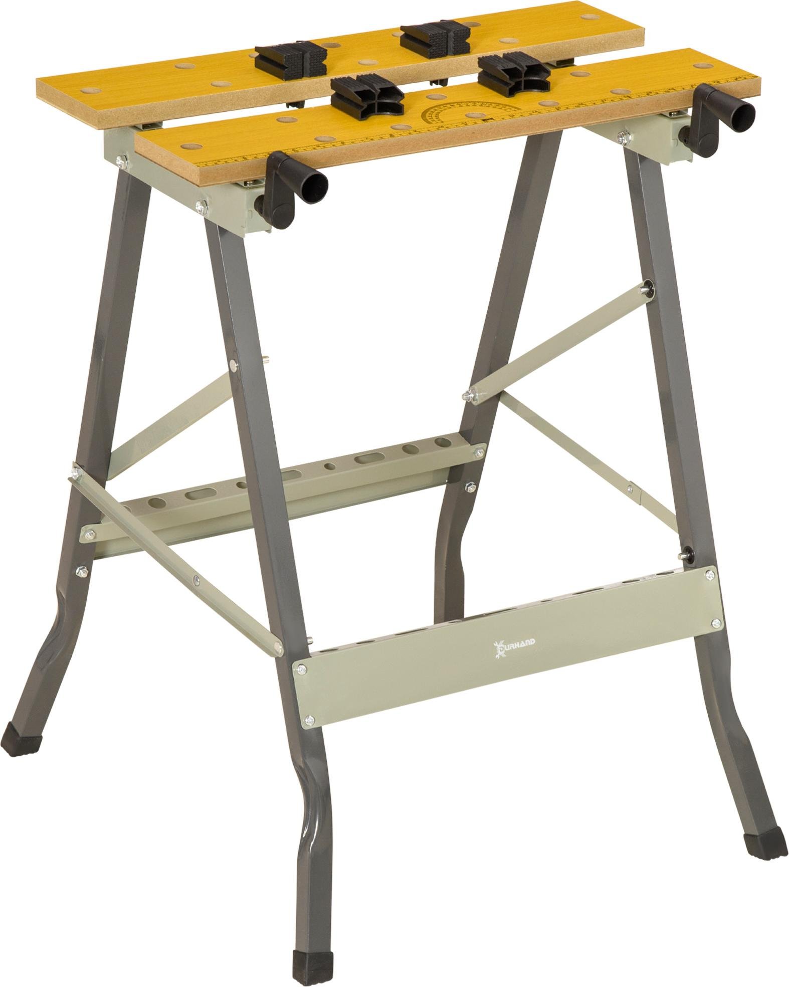 DURHAND Établi pliant établi de serrage avec 4 serre-joints table de travail chevalet de sciage, charge 100 kg, structure en acier, plan de travail pour chantier atelier garage, 62,5x60,5x78,5cm, gris