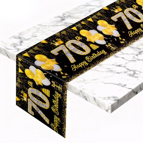POPOYU Plastique Nappe Anniversaire 70 ans,137x274cm Nappe Fête Noir Or Decoration Joyeux Anniversaire,Jetables Nappe Décorées de Fête pour Intérieur Extérieur Deco Table Anniversaire Femme Hommes