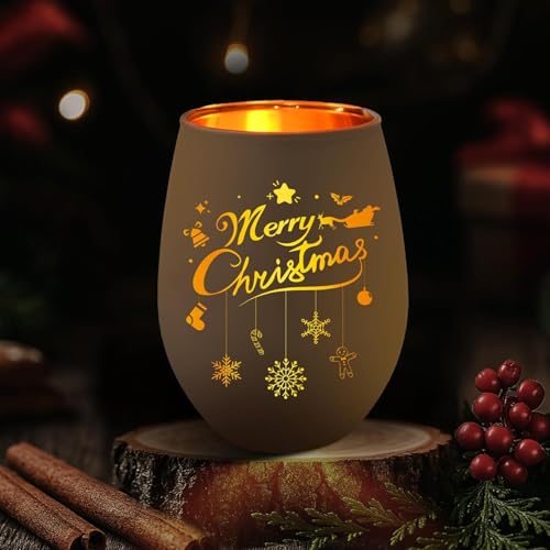 Farnirvana Photophores Décoratifs de Table Noël, Bougeoirs Noël pour Bougie Chauffe Plat Deco Table Noel, Verre De Noel pour Maison Fenetre, Contenant pour Bougie pour Salon Interieur