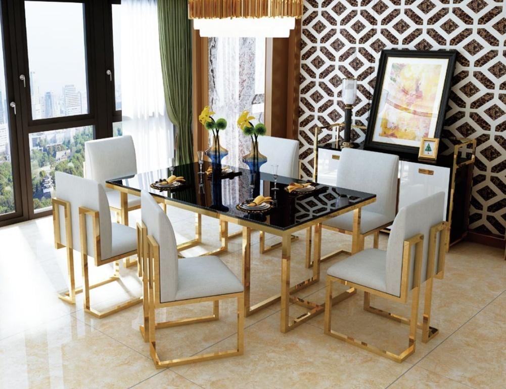 Table de salle à manger design en bois avec des éléments en acier inoxydable Tables Meubles de salle à manger 140/150x80cm