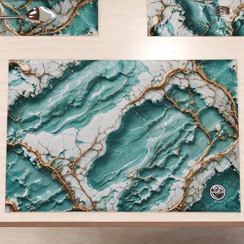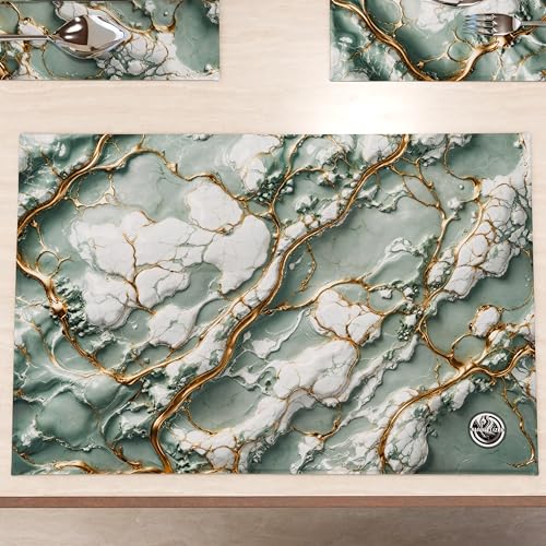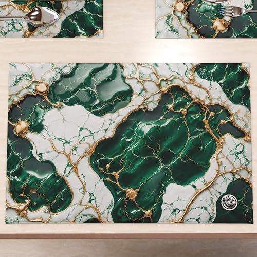 MARBLELIZED Lot de 2 Sets de Table en Tissu Effet marbre émeraude, élégants (30 x 45 cm) - Idéal pour Le Petit-déjeuner, Le déjeuner et Le dîner, idée Cadeau, 100% fabriqué en Italie