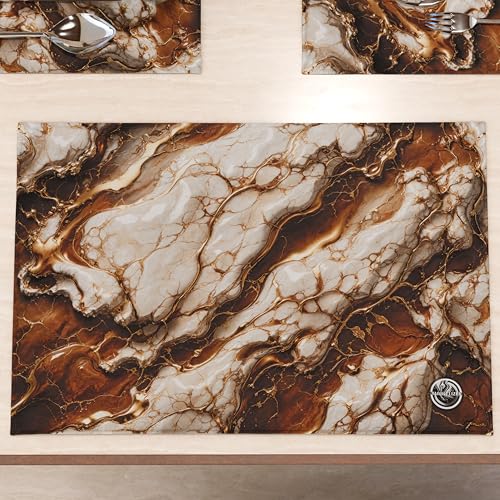 MARBLELIZED Lot de 6 Sets de Table en Tissu Effet marbre Marron (30 x 45 cm) élégants, Parfaits pour Le Petit-déjeuner, Le déjeuner et Le dîner, idée Cadeau, 100% fabriqué en Italie