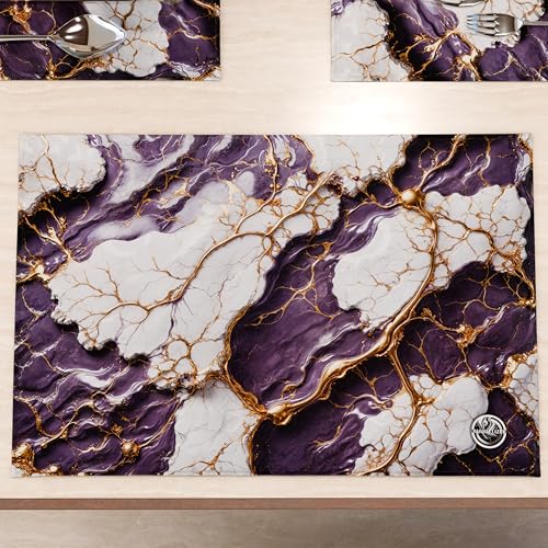 MARBLELIZED Lot de 2 Sets de Table en Tissu Effet marbre Violet (30 x 45 cm) - élégants, Parfaits pour Le Petit-déjeuner, Le déjeuner et Le dîner, idée Cadeau, 100% fabriqué en Italie