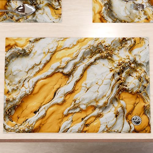 MARBLELIZED Lot de 2 Sets de Table en Tissu Effet marbre Jaune (30 x 45 cm) - élégants, Parfaits pour Le Petit-déjeuner, Le déjeuner et Le dîner, idée Cadeau, 100% fabriqué en Italie