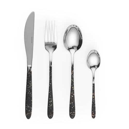 Salter BW11071EU7 Ménagère 16 Pièces, Design Cosmos, Set de Couverts de Table en Acier Inoxydable, Pour 4 Personnes, Inclus Couteaux, Fourchettes et Cuillères, Noir/Argent