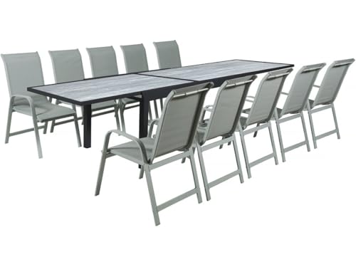 Table Extensible et chaises de Jardin en Aluminium Lagos - 200/320 x 105 x 76 cm - Taupe - 12 Places