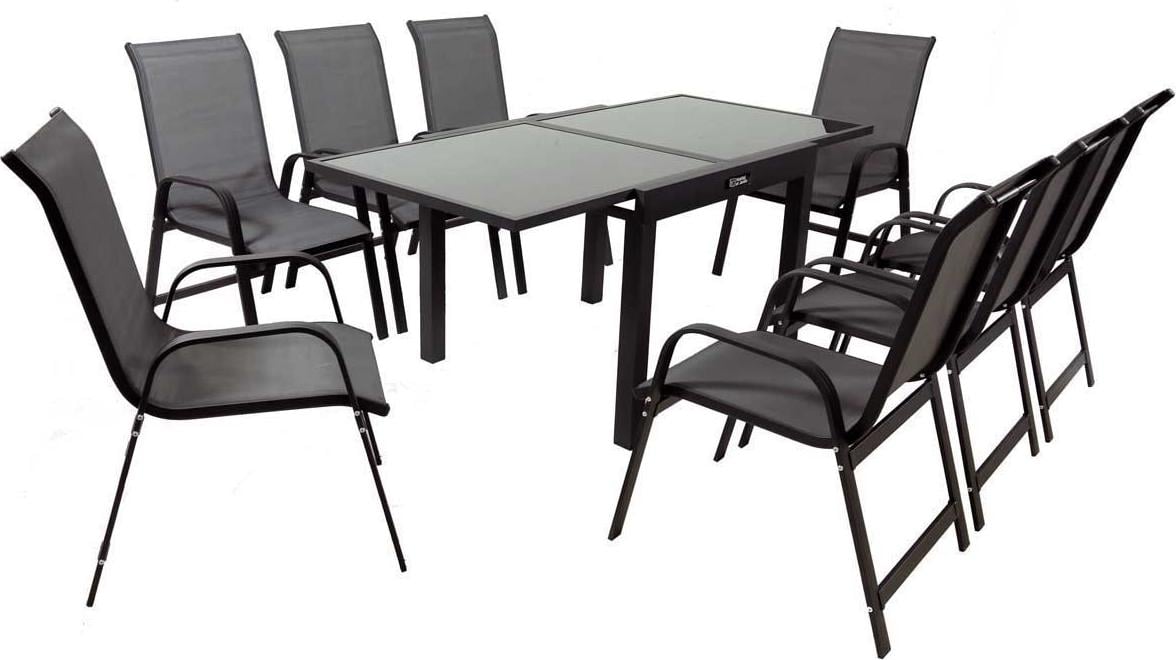 Table extensible et chaises de jardin en aluminium lagos - 200-320 x 105 x 76 cm - taupe - 10 places
