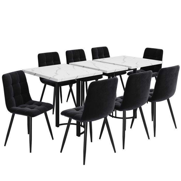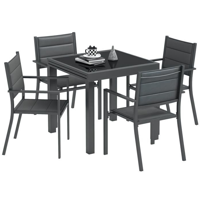 Table extensible et chaises de jardin en aluminium lagos - 200-320 x 105 x 76 cm - 10 chaises - noir