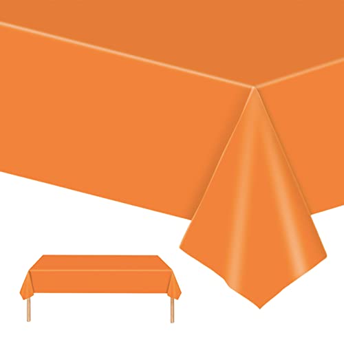POPOYU 1 Pièces Nappe Orange Jetable,54x108 Pouces Nappe Rectangulaire Anniversaire,Nappe Orange Couverture de Table en Plastique,Nappes Imperméables pour Anniversaire,Picnic,Exterieur,Mariage,Noël