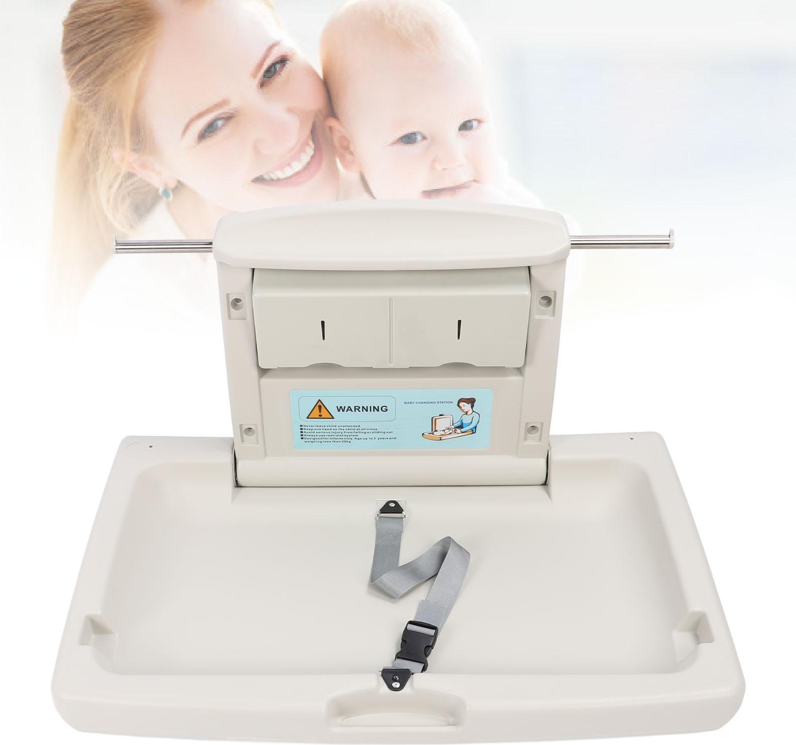Table à langer pour bébé avec ceinture de sécurité, crochet pour boîte de mouchoirs, table à langer pliable fixée au mur pour salles de bains publiques