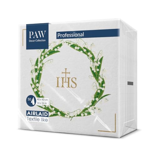 PAW - Serviette de Table Papier - Airlaid (40 x 40 cm) I 50 Pièces I Parfait pour la Communion, la Confirmation, le Baptême I Serviettes en Tissu de Décoration de Table I Fleurs Blanches