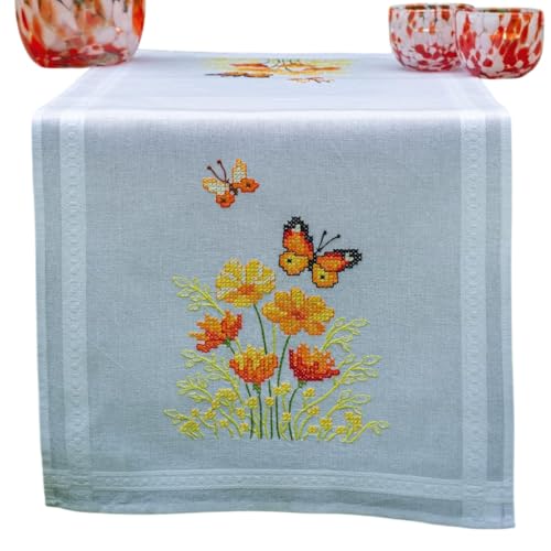 Vervaco Kit de Point de Croix: Chemin de Table: Fleurs et Papillons