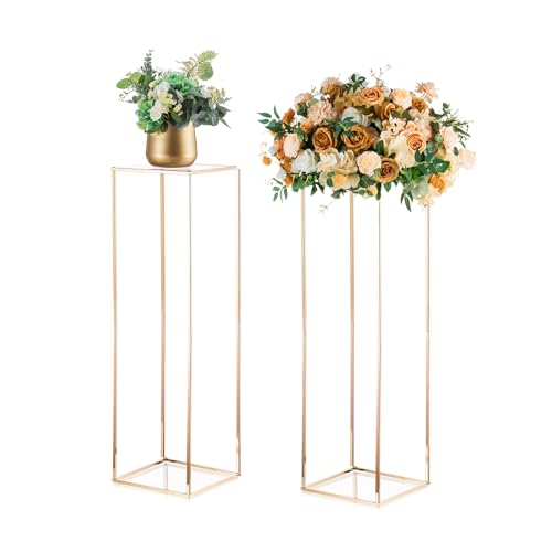 Support Fleurs Centres Table Mariage - 2 Pcs Or Vases à Colonne Métallique Inweder Grand Vase 100cm Vases Rectangulaires Centres de Table Porte Fleurs Géométriques Table Centres Décorations Maison