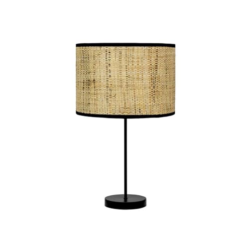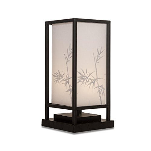 Lampe de table de haute qualité Lampe de table minimaliste moderne en fer chinois, abat-jour en bambou peint à la main, salon chambre lampe de chevet, bureau lampe de bureau, E27, noir Économiser de l