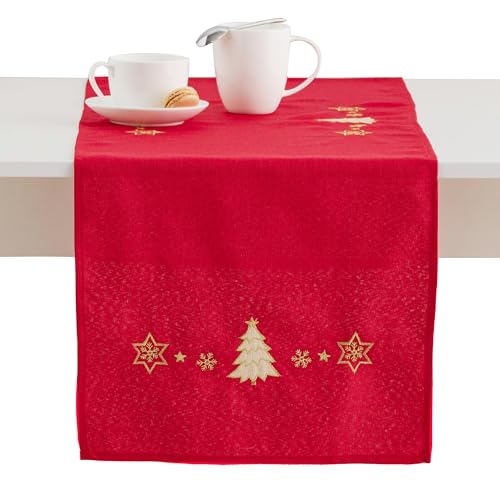 ESSEX - Nappe 40 x 140 cm Arbres Lumineux, Nappe en Tissu résistant, Nappe de Table de Haute qualité, Usage Multiple, Entretien Facile - Rouge