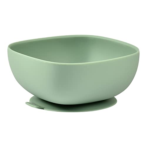 BÉABA, Bol Ventouse pour Enfant, 100% silicone, matière douce et très resistante, Adhère table/tablette chaise haute, Languette permettant de soulever l’assiette, Compatible micro-onde, Sage green