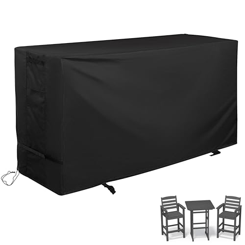 Starcrew Housse de Protection pour Salon de Jardin en Tissu Oxford imperméable, Noir, Convient pour Table Haute et chaises d'extérieur 3 pièces, Ajustement personnalisé avec Cordon de Serrage et