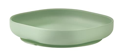 BÉABA, Assiette Ventouse pour Enfant, 100% silicone, matière douce et resistante, Adhère table/tablette chaise haute, Languette permettant de soulever l’assiette, Compatible micro-onde, Vert Sauge