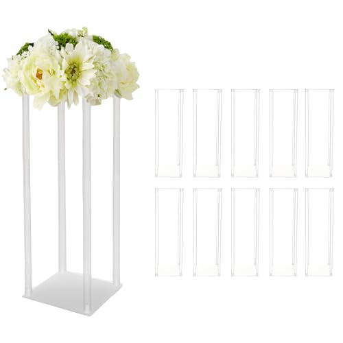 Lot de 10 vases en acrylique pour décoration de table de mariage - Hauteur : 60 cm - Socle transparent pour fêtes d'anniversaire et décorations de table de mariage - Amovibles - Coins arrondis