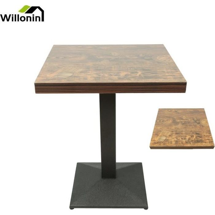 Willonin® Table de bar en MDF avec pied Table carrée Hauteur 75cm 60 X 60cm Brun pour salle à manger cuisine loft