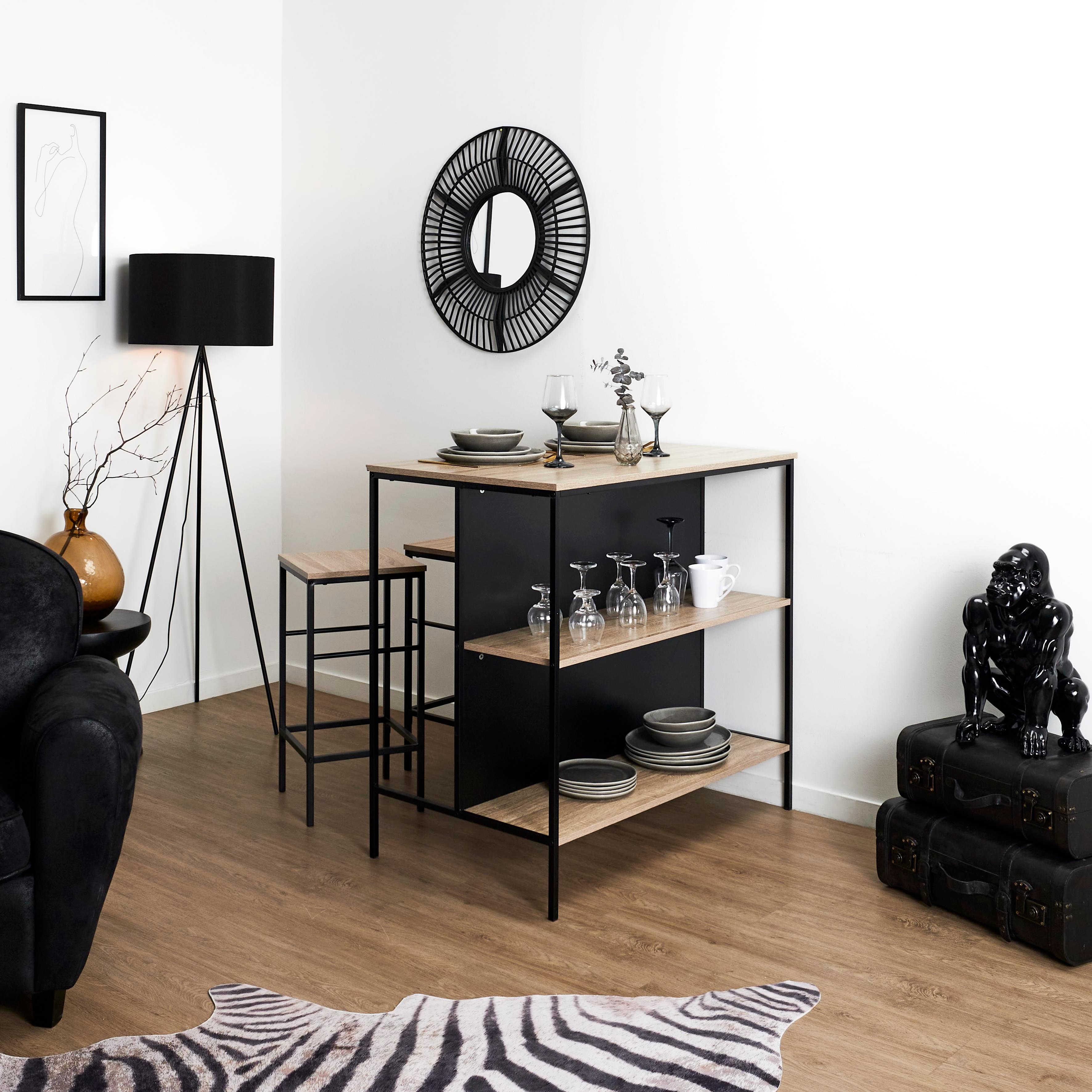 Table Ilot - Home Deco Factory - Loka - Ergonomique - Moderne - Marron Et Noir - H95 X L100 X P60 Cm