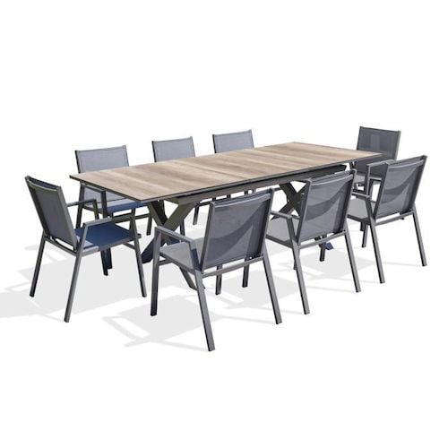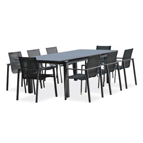 Avril Paris Table de jardin extensible en aluminium 270cm 8 fauteuils empilables textilène anthracite milo 8 Anthracite