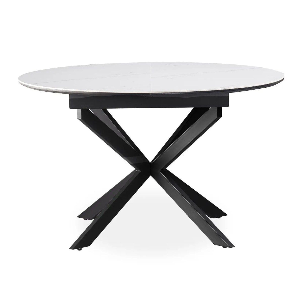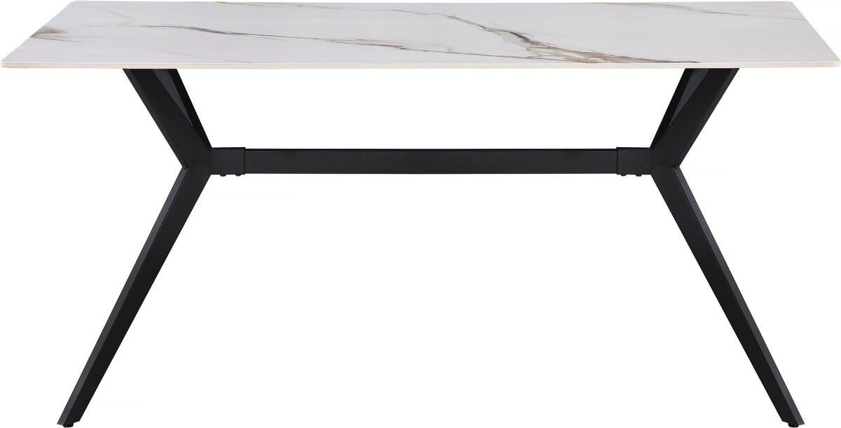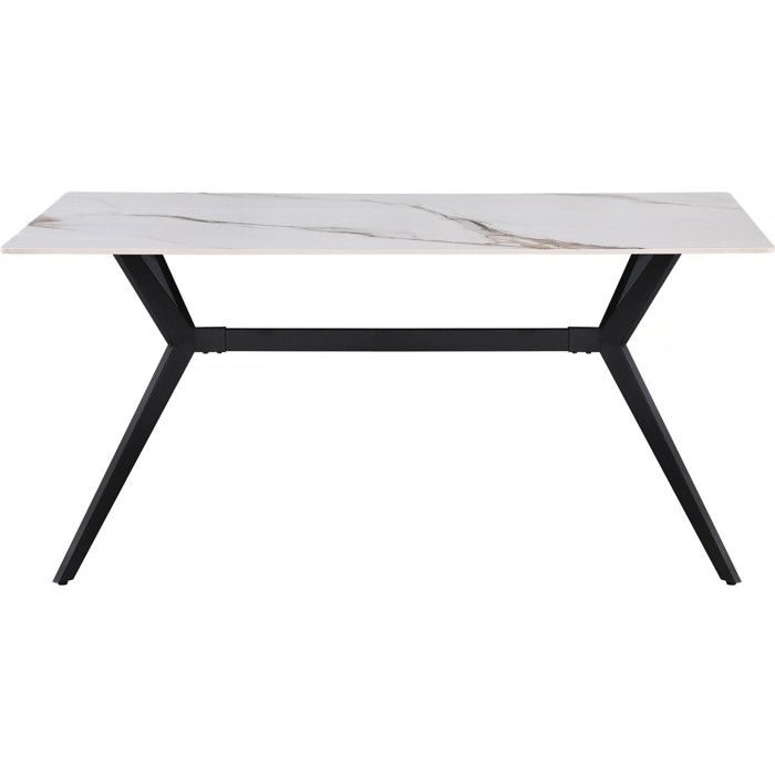 DELIFE Table-à-manger Edge 200x100cm Laminam céramique blanc pieds milieu acier plat noir