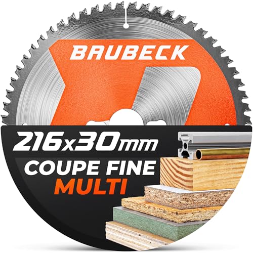BAUBECK Lame de scie 216x30 1,8 mm coupe fine dans le bois & l’aluminium, 60 dents pour scies à onglet & sur table, compatible avec Metabo KGS 216M, GCM 8 SJL, lame circulaire 216