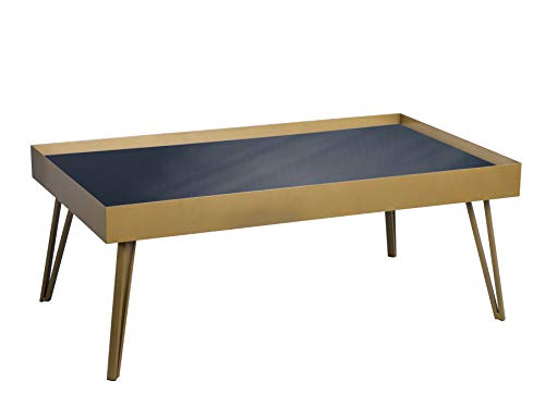 Macabane Table basse carrée 90x90cm aluminium doré et noir pieds métal JOHAN