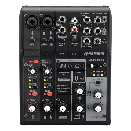 Yamaha AG06MK2 Table de mixage en direct 6 canaux avec interface audio USB - Pour Windows, Mac, iOS et Android - Noir