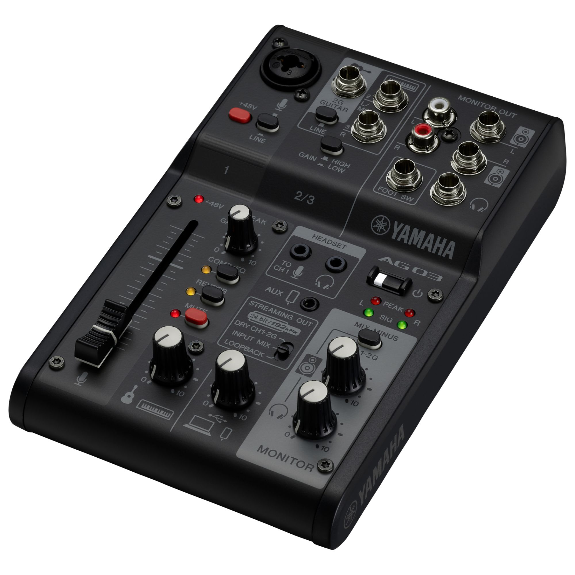 Yamaha AG03MK2 Table de mixage en direct 3 canaux avec interface audio USB - Pour Windows, Mac, iOS et Android - Noir