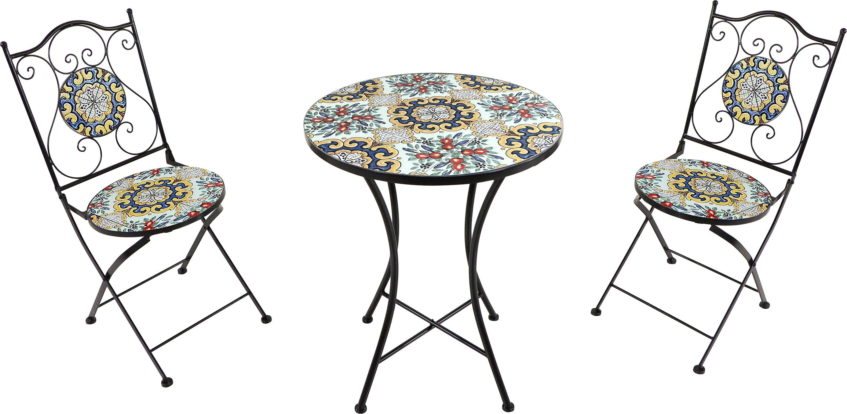 AXI Amélie Table et Chaise Bistrot, 2 Chaises 1 Table, Ensemble Bistro Extérieur Mosaique Bleu/Jaune, Sicilien | Salon de Jardin Bistrot, Table