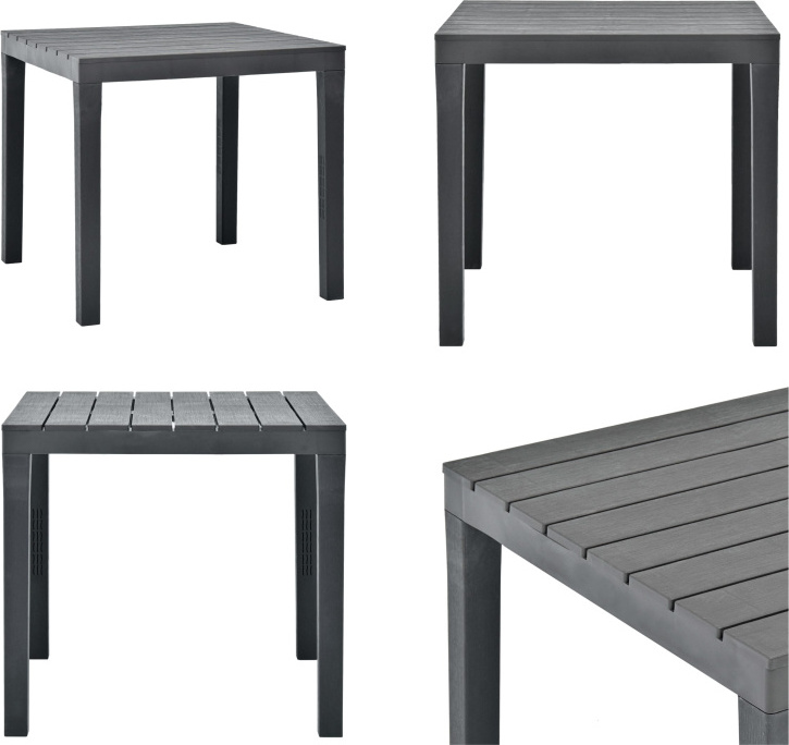 Table de jardin plastique anthracite 138x80x72cm imitation bois