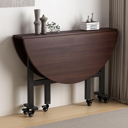 Table de salle à manger pliante ronde portable pour petits espaces avec 6 roues, parfaite pour la maison et les fêtes, pour 4 à 8 personnes (marron, 120 x 75 cm)