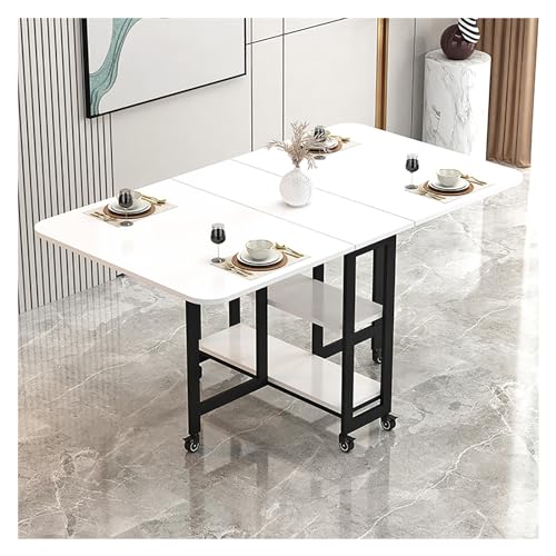 Table Pliable De Cuisine Salle À Manger, Table À Manger Pliante Mobile Sur Roulettes, Table Console Pliable 2-6 Personnes, Pour Petits Espaces Avec 2 Etagères De Rangement, Pour Salle À Manger ( Color
