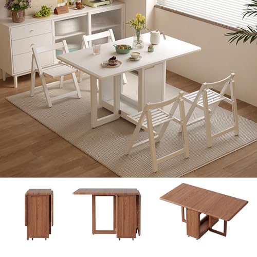 Table de salle à manger extensible en bois massif pour 4 à 6 personnes avec 4 chaises – Table pliante pour cuisine, salle à manger et salon Design peu encombrant Parfait pour les repas de famille