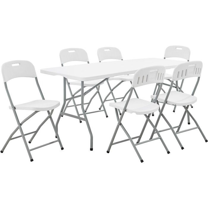 Ensemble de réception de jardin TERRANOVA 180 cm - 1 table pliante + 6 chaises - Acier et Polyéthylène PEHD - 6 personnes