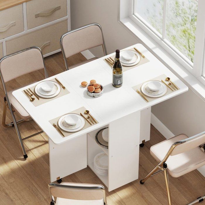 HOMCOM Table à manger pliante, table pliante cuisine extensible jusqu'à 6 personnes, pour petits espaces, salle à manger, blanc