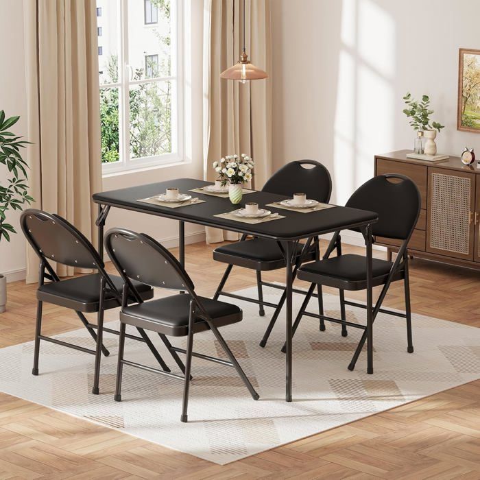 Table de salle à manger pliante en bois massif pour 4 à 6 personnes, design extensible avec 4 chaises – Idéal pour cuisine, salle à manger et salon, solution gain de place
