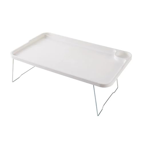 WEOKDFHA Table De Lit Pliante Table de lit Pliante Bureau d'ordinateur Pliable avec Porte-gobelet Portable for Ordinateur Fente for Carte téléphone créative Support Table d'étude for(Creamy-White)