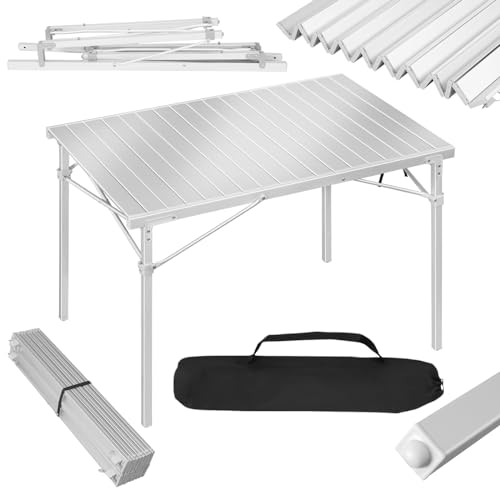 WOLTU Table Pliante, Table de Camping en Aluminium, Portable, avec Forte capacité de Charge de 60kg, 104 x 69 x 70 cm Argent