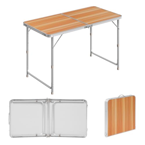 WOLTU Table de Camping Pliante Table de Jardin Tables de Travail Tables de Balcon réglable en Hauteur en Aluminium MDF,Chêne Clair