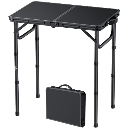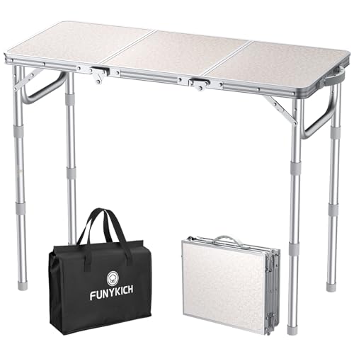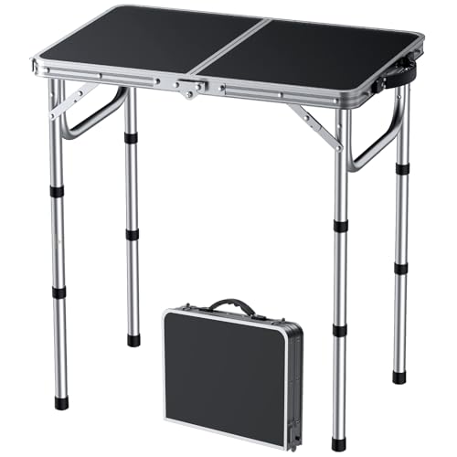 FUNYKICH Petite table de camping pliante de 0,6 m, hautes piqueniques portables à 3 réglages, tables d'extérieur en aluminium léger avec poignée de transport