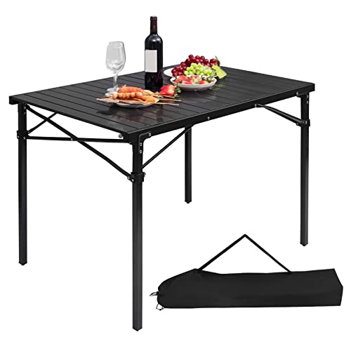 FUNYKICH Table pliante de camping (87 x 40 cm) avec 3 hauteurs réglables, table de pique-nique portable, table d'extérieur en aluminium léger avec poignée de transport pour camping, pique-nique